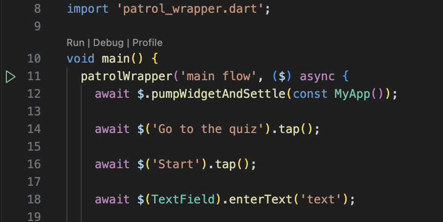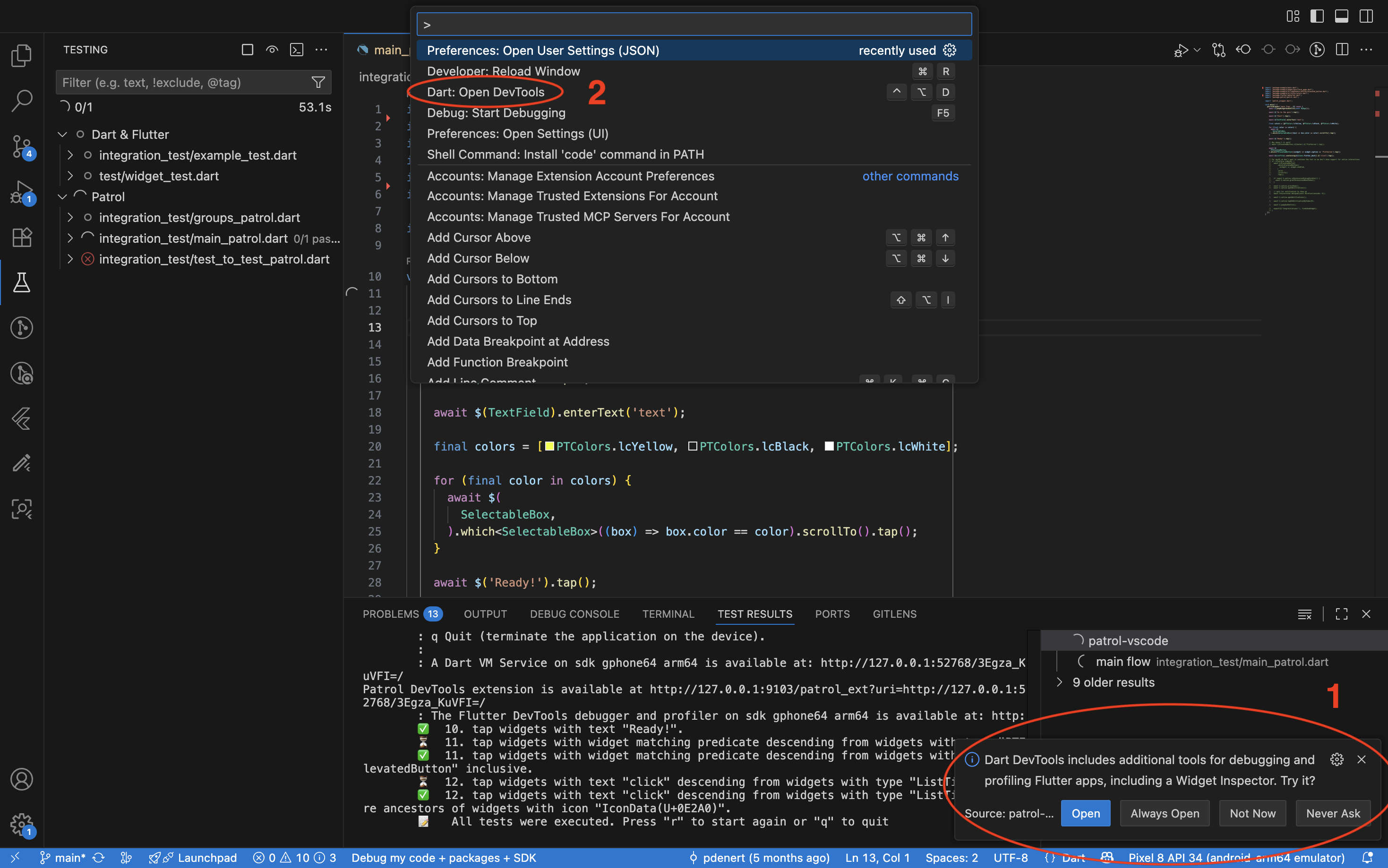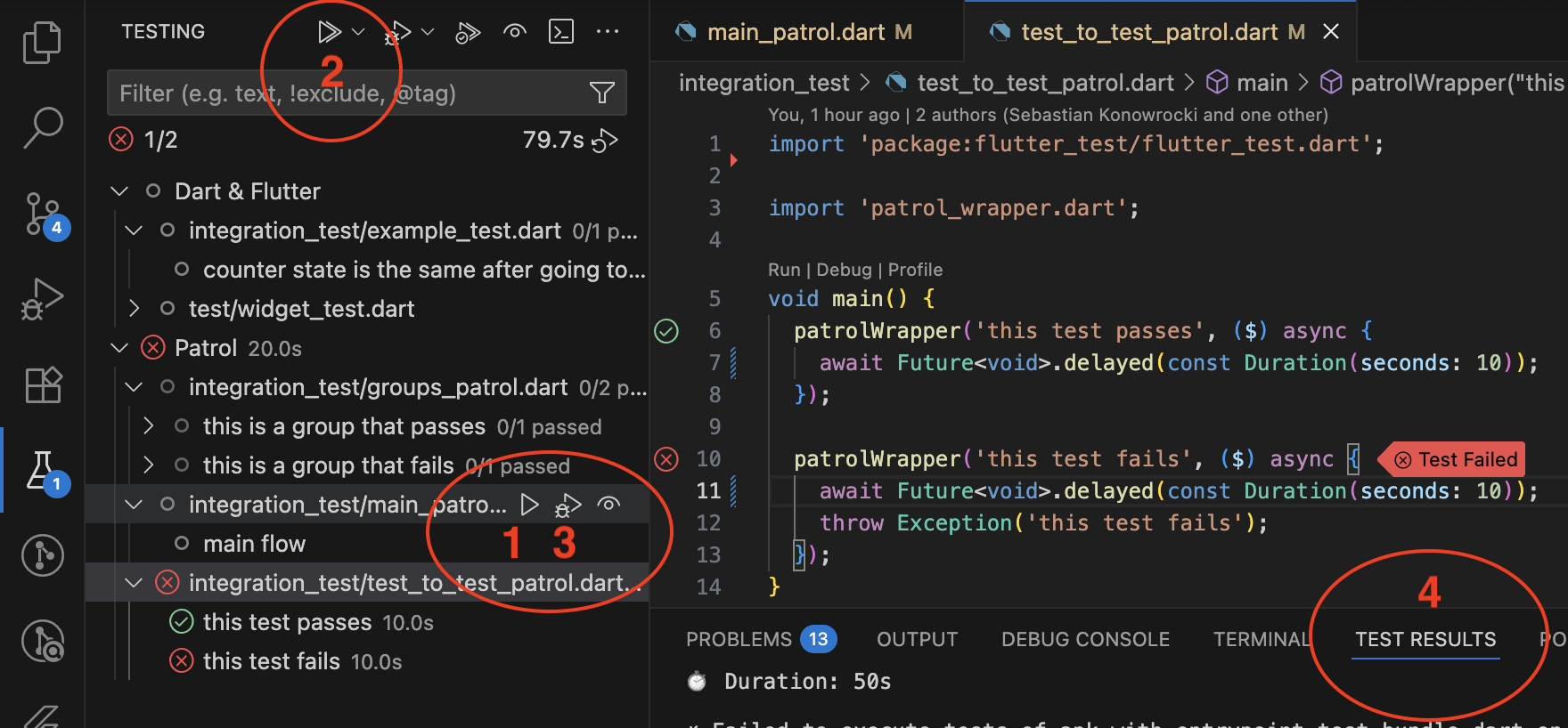 Let's go through features of our extension, that can help you developing and running Patrol tests.