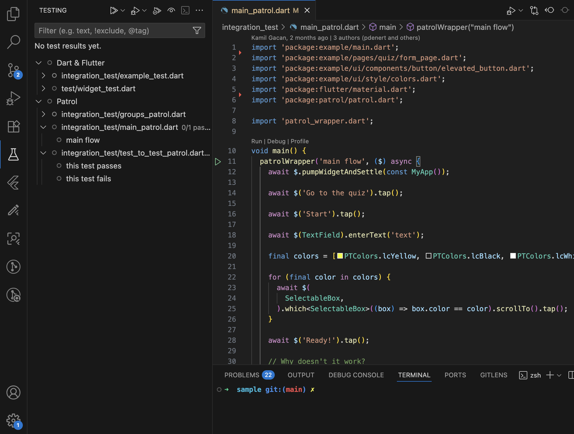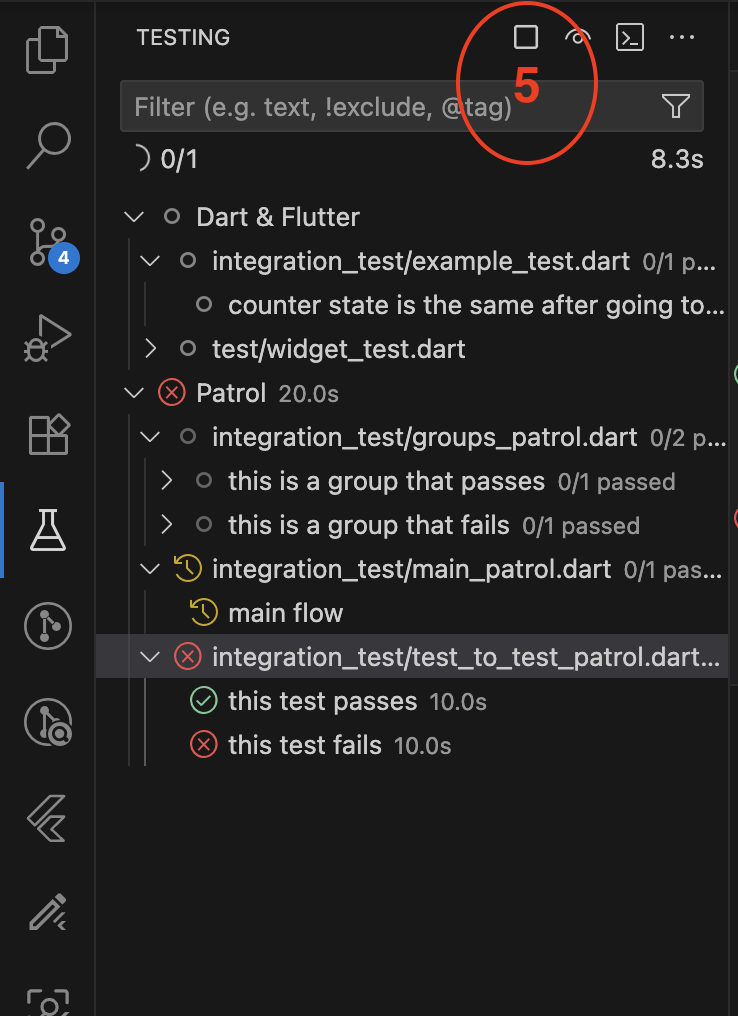 You should now see patrol tests in the Test Explorer tab in VS Code. They should